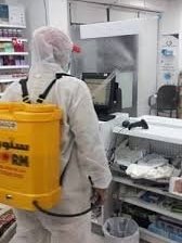 - ينطلق العمال إلى نثر ونشر المعقمات بالكيفية المثالية والكمية الصحيحة على كل سطح وكل مكون موجود داخل منطقة العمل بما في ذلك العفش والمفروشات والحوائط والأرضيات والأسقف لحين ضمان تعقيمها تمامًا ضد كل الفيروسات الخبيثة والجراثيم الضارة.